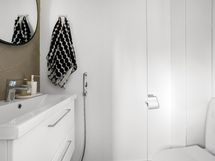 - Kylpyhuone, suihku, pesukoneliitäntä, lattialämmitys, kiinteät valaisimet, sähkösauna, erillinen wc, peili