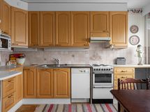 - Jääkaappi/pakastin, sähköliesi, astianpesukoneliitäntä, astianpesukone, kaapistot