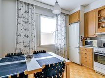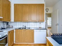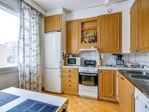- Keittiön varusteet: Astianpesukone, liesi, jääkaappipakastin ja liesituuletin. Liesi: sähköliesi. Työtason materiaali: Laminaatti.