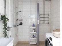 - Kylpyhuone, erillinen wc, suihku, suihkuseinä, peilit, allaskaappi, pesukoneliitäntä, lattialämmitys, kiinteät valaisimet.