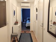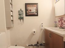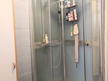 Varustus: suihkukaappi, pesukoneliitäntä, lattialämmitys, suihku. Varustus: lattialämmitys, peilikaappi, bidee-suihku.