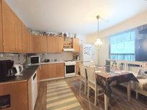 Liesi: sähköliesi. Kylmäsäilytys: jääkaappi/pakastin. Varustus: liesituuletin, astianpesukone.