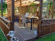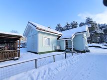 Tästä sievästä omakotitalosta löytyy makuuhuone, olohuone, keittiö, pesuhuone ja sauna sekä erillinen wc. Huonetiloissa on laminaattilattiat, pesutiloissa laatoitus lattialämmityksellä. Pesuhuoneesssa suihkukaappi. Pihassa autokatos/varasto sekä kivan oloinen katettu pergola.