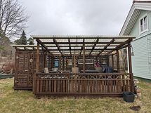 julkisivun maalaus 2022, terassien rakentaminen / kunnostus 2021 ja 2019, autokatoksen maalaus 2019, talon peruskorjaus ja laajennus 1985