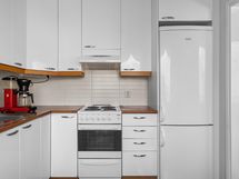 - Jääkaappi/pakastin, sähköliesi, liesituuletin hormiin, kiinteät valaisimet