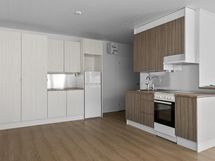 - Jenkkikaappi, keraaminen liesi, liesituuletin/ aktiivihiilisuodatin, kaapistot. Uusittu v. 2018.