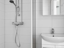 - KYLPYHUONE-WC: suihku, suihkuseinä, sähköinen lattialämmitys, pesukoneliitäntä, peilikaappi, kylpyhuonekaapisto, kiinteät valaisimet. Kylpyhuone uusittu kokonaisuudessaan v. 2018.