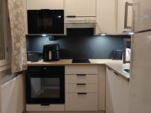 - Liesi: erillisuuni, liesitaso. Kylmäsäilytys: jääkaappi/pakastin. Varustus: liesituuletin, astianpesukone.