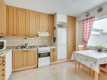 - Keittiön varusteet: Astianpesukone ja jääkaappipakastin. Liesi: Sähköhella.