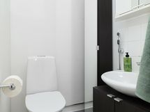- Sauna, sähkökiuas, kylpyhuone,suihku, suihkuseinä, kaapit, pesukoneliitäntä. Lattialämmitys kph, sauna, wc. Kiinteät valaisimet. Erillinen wc.
