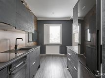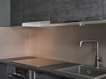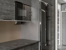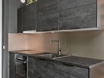 - Keittiön varusteet: Jääkaappipakastin, liesi, liesituuletin, uuni ja astianpesukone. Liesi: Induktioliesi. Työtason materiaali: Laminaatti.