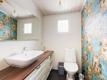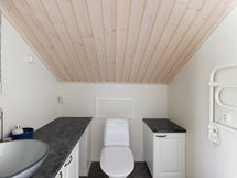 - Sähkökiuas, kylpyhuone, erillinen wc x 2, suihku, peilit, pesukoneliitäntä khh, lattialämmitys. Pyykinpesukone. Kylpyhuone, sauna, kodinhoito, wc laajennusosassa, joka rakennettu 2021.
