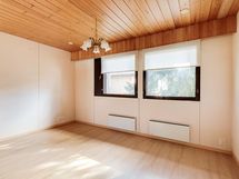 Keittiö: Lattia laatta. Olohuone: Lattia laminaatti, seinät maalattu. Makuuhuone 1: lattia muovimatto, seinät tapetti. Makuuhuone 2: lattia muovimatto, seinät maalattu. Wc: lattia laatta, seinät laatta. Takkahuone: lattia laatta, seinä maalattu, puupaneeli.