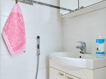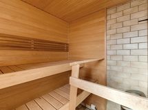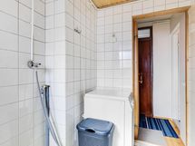 Sauna, sähkökiuas, kylpyhuone, erillinen wc, suihku, peilit, pesukoneliitäntä kph, lattialämmitys vesikiertoinen.