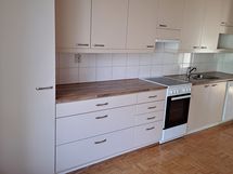 - Tilaa isolle ruokapöydälle, Paljon kaappitilaa, Paljon työskentelytilaa, Suuri tiskipöytä, Laminaattitasot, Astianpesukone, Keraaminen liesi, Liesituuletin, Jääkaappi, Pakastin