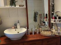 Suihku, Kylpyamme, Pesukone, Laattalattia, Laattaseinä, Lattialämmitys