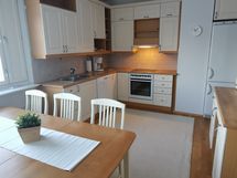 - Tilaa isolle ruokapöydälle, Paljon kaappitilaa, Paljon työskentelytilaa, Laminaattitasot, Astianpesukone, Keraaminen liesi, Liesituuletin, Erillinen uuni erikseen, Jää-pakastinkaappi,