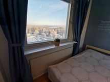 - Yläkerran asunnosta erittäin hyvät näkymät. Parvekkeelta näkyy puistomaisema (jonka takana Puijon harjanne ja Puojon torni), keittiöstä ja toisesta makuuhuoneesta näkyy Kallavesi. Näkymät ilmavat, korkealla kun ollaan!