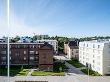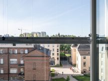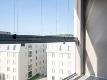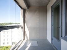 Tässä YLIMMÄN kerroksen (6/6krs.) huoneistossa on koko huoneiston levyinen lasitettu parveke, joka antaa mukavasti valoisuutta ja lisätilaa asunnolle. Parvekkeen näkyvät on hienolle sisäpihalle ja etelään / itään päin. Parvekkeelta näkyy hieman myös Valkeisenlampi.