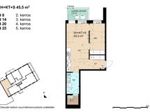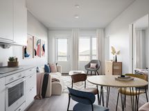 Persoonallinen kaksio omalla saunalla! Pitkän päivän pölyt on ihana huuhtoa kotisaunan lauteilla. Keittiön ja olohuoneen yhdistelmässä kaikki olennaisimmat kalusteet loksahtavat luontevasti paikoilleen. Lasitetusta parvekkeesta kannattaa sisustaa oman tyylin mukainen viihtyisä kesäkeidas.