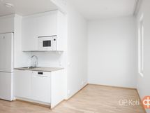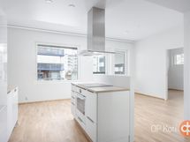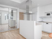 Jääkaappipakastin, erillisuuni, liesitaso, liesikupu, astianpesukone, kaapistot Puustelli, kiinteät valaisimet.