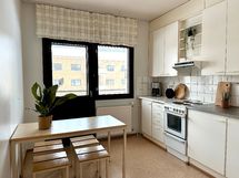 Keittiössä mukavasti laskutilaa sekä korkea jääkaappipakastin. Keittiöstä käynti parvekkeelle, josta metsämaisema. Kylpyhuone tilava, jossa myös tila pyykinpesukoneelle.