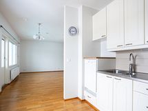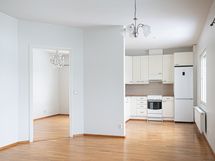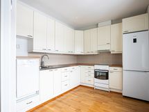 - Jääkaappi, pakastin, sähköliesi, -tuuletin, astianpesukone. Lattiassa parketti, seinissä maalipinnat. Näkymät keskustaan.