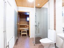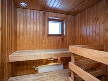 - Kuvaus: sähkökiuas. Lattiassa laatoitus, seinissä ja katossa paneeli. Ikkuna.