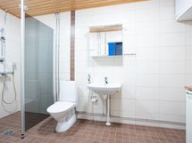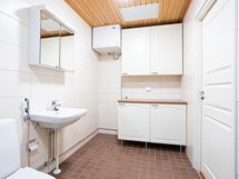 - Pesutilojen kuvaus: Tilava kph. Lattia ja seinät laatoitettu, lattialämmitys. Suihku, pyykinpesukoneen liitäntä. Erillisen WC:n kuvaus: Kph:een yhteydessä.