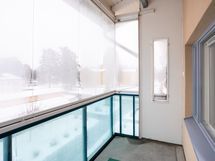 - lasitettu parveke, näkymät idän suuntaan kirkonkylän keskustaan.