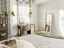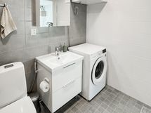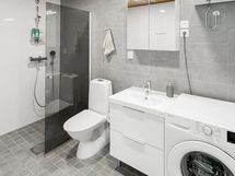 Kylpyhuone, suihku, peilit, pesukoneliitäntä, lattialämmitys, kiinteät valaisimet.