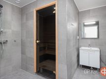Kodinhoitohuone yhdistyy kylpyhuoneeseen, josta löytyy tietenkin oma sauna. Kodinhoitotilaan pääsee myös makuuhuoneesta ja erillisenä huomiona tilava sekä käytännöllinen vaatehuone. Kaksi tilavaa makuuhuonetta reiluine säilytystiloineen molemmin puolin kotia luovat tilaa olla ja hengittää niin arjessa kuin juhlassa. Erillinen wc kruunaa arjen sujuvuuden.