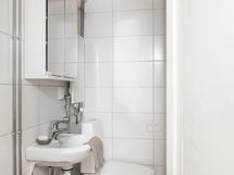 - Suihku, Pesukone, Peilikaappi, Lattialämmitys, Laattaseinä, Laattalattia