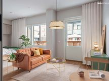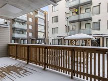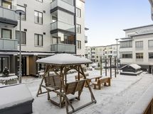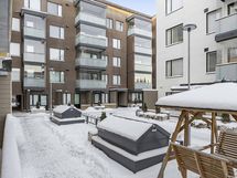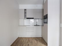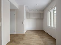 Tämän kodin erikoisuutena on tavanomaisesta poikkeava, toimiva pohjaratkaisu sekä koko asunnon levyinen, aidattu terassi rauhallisen sisäpihan puolella – täydellinen paikka nauttia kesäilloista ja omasta rauhasta. Tilavassa keittiössä kokkaus ja leivonta sujuvat vaivatta, sillä varustelu on huippuluokkaa: integroidut kylmälaitteet, astianpesukone, yhdistelmäuuni ja induktiotaso tekevät arjesta helpompaa. Keittiöön saat kätevästi myös pienen ruokapöydän ja valoisa oleskelutila muuntuu helposti sekä seurusteluun että rentoon tv:n katseluun. Nukkumiselle on varattu oma, rauhallinen alkovi, johon mahtuu parisänky sekä kätevät yläkaapit tuomaan lisää säilytystilaa. Heti sisään astuessa eteisessä odottaa säilytysratkaisut niin vaatteille kuin siivousvälineillekin. Pohjoisen ilmansuunta takaa miellyttävän viileän kodin myös kesän helteillä. Tätä pohjaratkaisua on tarjolla vain tämä yksi – tule ihastumaan ja tee tästä ainutlaatuisesta yksiöstä oma uusi kotisi!