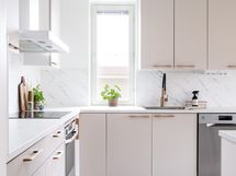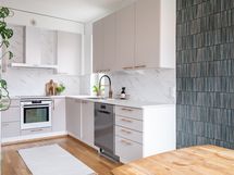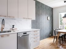 Uusittu ovet, välitila ja tasot. Uusittu hana ja allas: Stala allas, Damixa hana, led valoja lisätty. Varustus: astiapesukone (2024) jääkaappi, pakastin, erillisuuni, liesituuletin