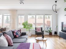 - Muuta kauppaan kuuluvaa: Eteisen elfajärjestelmä, verhokiskot, olemassa olevat sälekaihtimet, olemassa olevat verhotangot, kiinteät kaapistot, kiinteät valaisimet