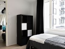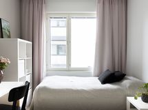 Asunnon pohjaratkaisu on sopiva moneen elämänvaiheeseen, sillä makuuhuoneet sijoittuvat fiksusti eri puolille asuntoa antaen omaa rauhaa asukkailleen. Toisessa makuhuoneista on tilava vaatehuone. Avara olohuone ja moderni keittiösyvennys muodostavat viihtyisän kokonaisuuden ja kutsuu koko perheen viettämään yhteistä aikaa. Kylpyhuoneessa pyykkihuolto on piilotettu kivasti oven taakse, jotta kylpyhuone on siisti ja selkeä tila. Omassa saunassa voit rentoutua kiireisen päivän päätteeksi. Erillinen wc on nykyajan vaatimuksissa ihan välttämätön ja tästä kodista sellainen tietenkin löytyy.