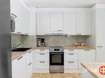 - Jääkaappi, pakastekaappi, keraaminen liesi, liesituuletin, astianpesukone, kaapistot, kiinteät valaisimet.