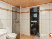 - Sauna, sähkökiuas, kylpyhuone, erillinen wc, suihku, suihkuseinä, peilit, peilikaappi, kaapit, allaskaappi, pesukoneliitäntä, lattialämmitys kylpyhuone, vesikiertoinen, kiinteät valaisimet.