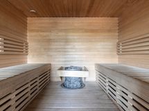 Kuvaus: Sauna on tehty yläkertaan 2018. sähkökiuas