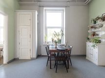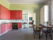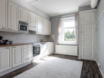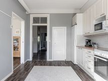 Liesi: keraaminen. Kylmäsäilytys: jääkaappi. Varustus: astianpesukone. Asuinkerroksen (yläkerran) keittiö on uusittu 2014-2016.