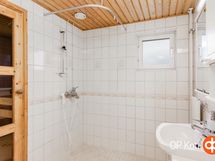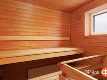 Sauna, sähkökiuas, kylpyhuone, erillinen wc, suihku, peilit (erilliswc), peilikaappi, allaskaappi, pesukoneliitäntä, lattialämmitys (ei toimi), kiinteät valaisimet.