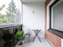 Tervetuloa tutustumaan Maaherrankadun ylimmän kerroksen kulmahuoneistoon, jossa lasitettu parveke tuo mukanaan ripauksen luksusta ja tarjoaa puistomaiset näkymät.