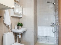 - Varustus: pesukoneliitäntä, wc-istuin, suihku, peilikaappi, kiinteät valaisimet, kylpyhuonekaapisto.