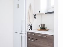 - Liesi: sähköliesi. Kylmäsäilytys: jääkaappi/pakastin. Varustus: liesikupu, kiinteät valaisimet.