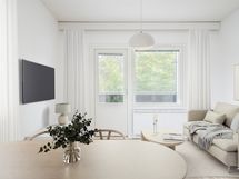 Tässä 1984 rakennetussa kerrostalokodissa on selkeä ja toimiva tilaratkaisu, joka tarjoaa mukavuutta ja käytännöllisyyttä. Huoneisto käsittää valoisan olohuoneen, josta on suora käynti lasitetulle parvekkeelle. Parveke on kuin yksi lisähuone, jossa voit nauttia kevään ensimmäisistä auringonsäteistä tai pimenevistä syysilloista suojassa säältä. Kätevän kokoisen keittokomeron ansiosta saat valmistettua helposti niin arjen perusateriat kuin juhlavat illalliset. Kylpyhuoneeseen mahtuu pyykinpesukone ja omassa saunassa voit viihtyä syksyn viilenevien päivien jälkeen. Makuuhuone on sijoitettu kivasti omaan rauhaan asunnon toiselle puolelle.