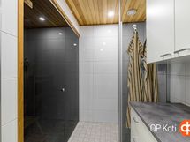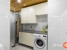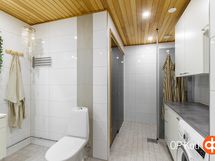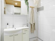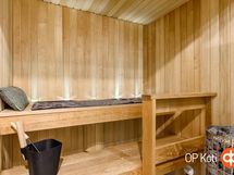 - Sauna, sähkökiuas, kylpyhuone, suihku, peilikaappi, kaapit, allaskaappi, pesukoneliitäntä, lattialämmitys, kiinteät valaisimet.