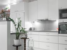 - Jääkaappi, pakastekaappi, erillisuuni, induktioliesi, liesituuletin, astianpesukone, kaapistot, kiinteät valaisimet.