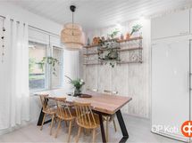 Yksitasoinen, vaalea ja tyylikäs rivitalokoti odottaa uusia asukkaitaan Saaristokaupungin Rautaniemessä! Upea koti metsän laidassa lumoaa sijannillaan ja harkituilla sisustusvalinnoillaan. Keittiö ja olohuone muodostavat valoisan ja yhtenäisen kokonaisuuden. Kaksi makuuhuonetta kylpyhuoneen molemmin puolin. Tunnelmallisessa saunassa on pilarikiuas ja savulasiseinä rajaa saunan kylpyhuoneesta. Viilennyspumppu asennettu pitämään sisälämpötila sopivana asukkailleen. Olohuoneesta käynti lasitetulle terassille, jonka lisänä patio ja nurmipihaa, joka rajoittuu metsikköön. Autolle on paikkansa suojaisassa katoksessa ja paikka kuuluu tähän pakettiin ilman erillisiä osakekirjoja. Kivassa taloyhtiössä on lisäksi edullinen vastike. Saaristokaupungin upeat ulkoilumaastot kutsuvat liikkumaan kotioveltasi. Talvella riittää latuja hiihdeltäväksi ja kesäisin kutsuu läheinen uimaranta sekä huikaisevat pyöräily- ja lenkkeilypolut. Tervetuloa ihastumaan tähän herkkuun! Näyttöpyynnöt justus.malinen@op.fi, 0505637925 tai mari.pohjonen@op.fi.