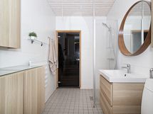 - Kaksi kylpyhuonetta, jotka remontoitu 2017-2018, kylpyhuoneissa wc-istuimet, pesukoneliitännät, suihkut, suihkuseinät, peilit, kylpyhuonekaapistot, kiinteät valaisimet, sauna uusittu 2017-2018. Sähköjä uusittu toiseen kylpyhuoneeseen 10/2021. Molempien kylpyhuoneisen hanat ja bideet uusittu 10/2021.